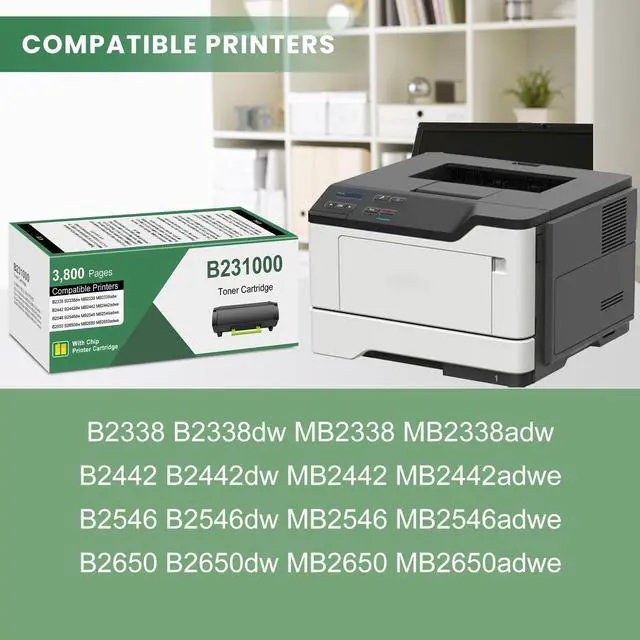 Compatible List: Compatible for Lexmark B231000 Black toner cartridge replacement for Lexmark B2338 B2338dw MB2338 MB2338adw B2442 B2442dw MB2442 MB2442adwe B2546 B2546dw MB2546 MB2546adwe B2650 B2650dw MB2650 MB2650adwe ^^