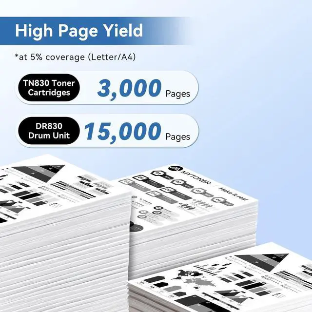 Quality]: TN830XL toner and DR830 drum unit produce clear and long-lasting prints with sharp text and vibrant colors, and are engineered to maintain consistent print quality throughout their lifespan, ensuring that your prints look great from the first page to the last