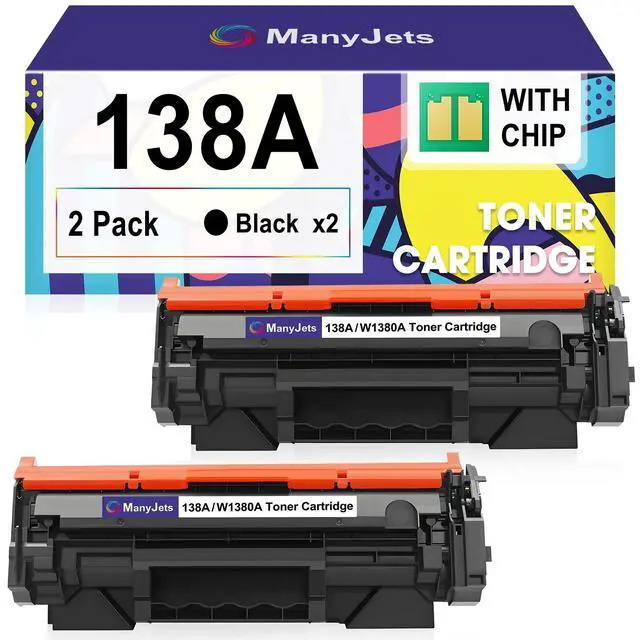 PACKAGE CONTENTS: ManyJets 138A Black toner cartridge replacement for HP 138A W1380A (2-pack, NON-OEM) ^^