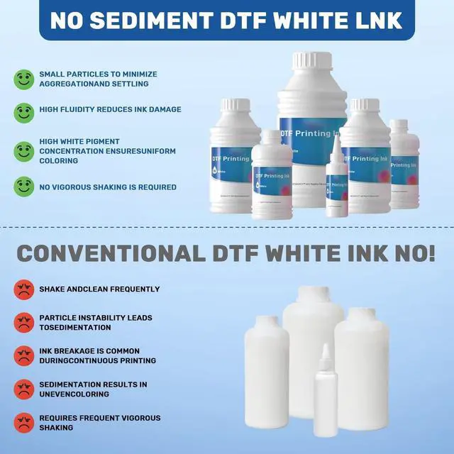 [Wide Printhead Compatibility] GEVANCY dtf inks are tested with multiple printheads, including L1800, L805, R1390, 4720, I3200, XP600, DX7, DX5, 5113, 1430, TX800, P400, P408, P640, P600, P608, P800, P5000, P6000, R1800, R1900, R2000, R2400, 4800, 4880, 4900, 7880, 7890, R3000, R3880, F2000, F2100, F2200, P700, P900, XP-15000, and moreproviding flexibility for different DTF printer setups. ^^ [High-Opacity White DTF Ink] Formulated with ultra-fine particles, our white dtf ink provides dense coverage and resists sedimentation.