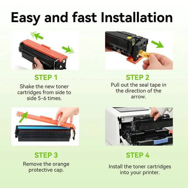 ^^ With Pre-Installed Chip: swiss toner 414A toner cartridges 4 pack come with pre-installed smart chips, enabling immediate identification by your printer.