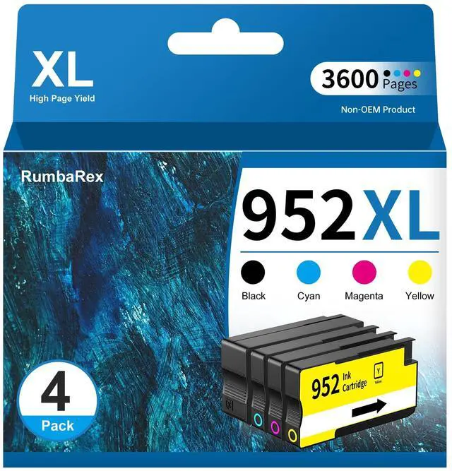 The Package Contains: 952 952XL Ink Cartridges 4-Pack (Black, Cyan, Magenta, Yellow) ^^ Compatible with HP OfficeJet Pro 7720 7730 7740 8200 8210 8216 8218 8700 8710 8714 8715 8716 8717 8718 8719 8720 8724 8725 8726 8727 8728 8730 8732M 8734 8735 8736 8740 8743 8744 8745 8746 8747 Printer ^^ RumbaRex 952 962XL Ink Cartridges with Latest Chip, Fully Compatible with All Firmware Versions and Working Perfectly with All Compatible Printers ^^