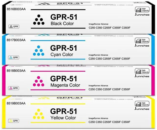 Packing Contents: 4-Pack GPR51 GPR-51 toner cartridge, 1 gpr51 black toner cartridge, gpr51 cyan toner cartridge, gpr51 magenta toner cartridge, gpr51 yellow toner cartridge ^^