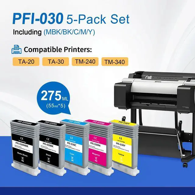 Package Content: 5Pack PFI-030 Ink Tank Set (1Matte Black, 1Black, 1Cyan, 1Magenta, 1Yellow), Capacity: 55ML each, total 275ML ^^