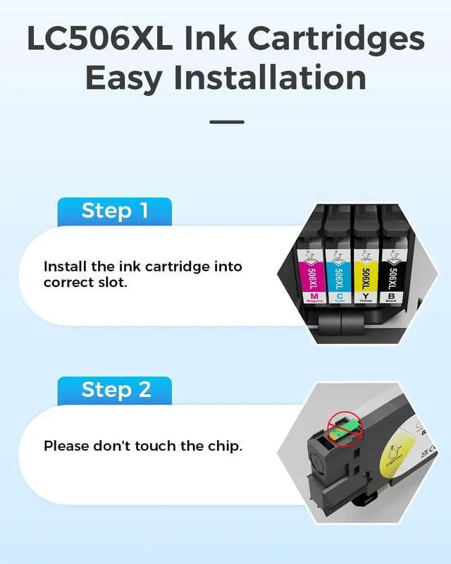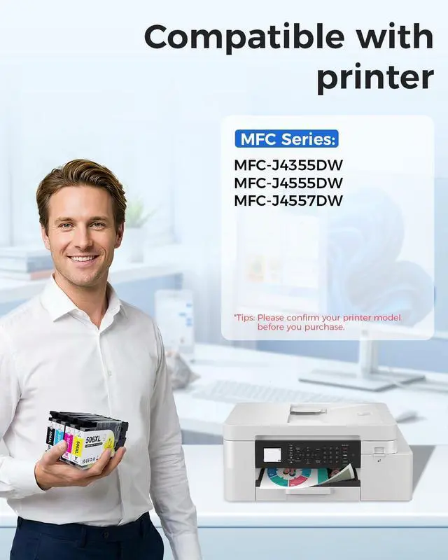 Latest Upgraded Chip: With upgraded smart chips, these LC506XL ink cartridges ensure instant printer recognition, precise ink level monitoring, and reliable performance for your Brother MFC-J4355DW MFC-J4555DW MFC-J4557DW ^^ Complete 4-Pack