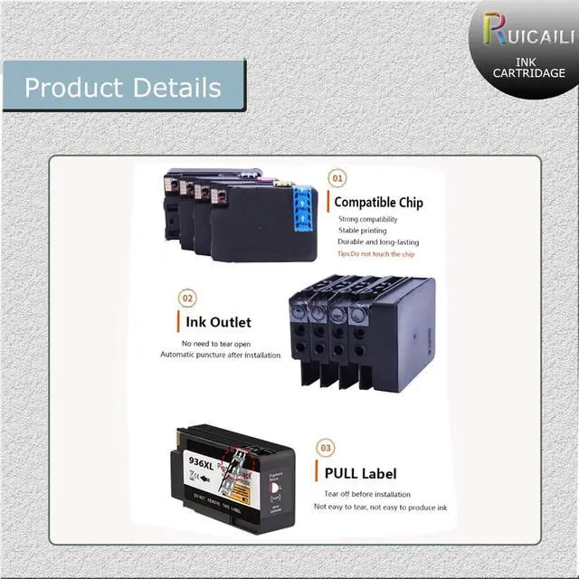 Yield: Up to 2500 pages per 936e 936XL Black ink cartridge, up to 1650 pages per 936e 936XL Cyan Yellow Magenta ink cartridge. The cartridge is easy to install. Each cartridge is rigorously tested to ensure leak-free and stable print performance.