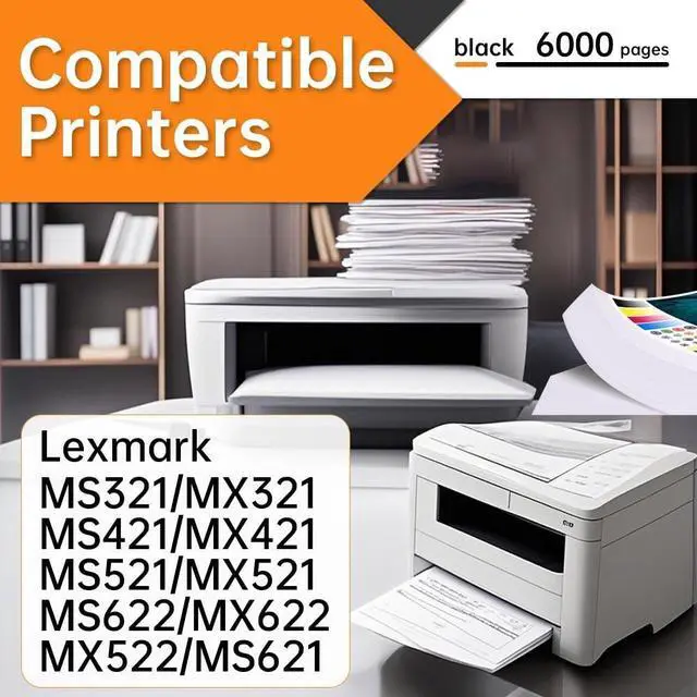 This cartridge is compatible with: Lexmark MS321dn MS421dn MS421dw MS521dn MS621dn MS622de MX321adn MX321adw MX421ade MX521ade MX521de MX522adhe MX622ade MX622adhe Printer ^^