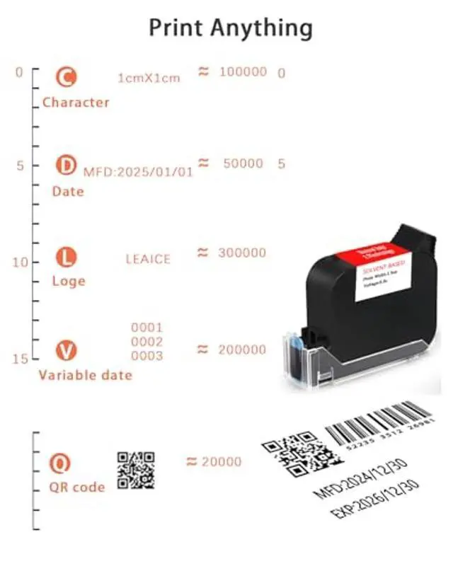 Work On Almost Any Surface: Leaice ink cartridges can be widely used on water-absorbent or non-absorbing materials, such as Cardboard, Paper, Wood, Metal, Ceramics, Glass, Fabrics, etc. The drying speed of the ink varies depending on temperature and material