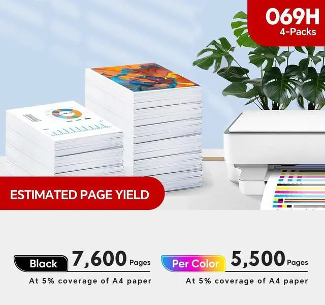 ^^ High Page Yield: Up to 7, 600 pages per 069 black high yield toner cartridge, Up to 5, 500 Pages per 069H cyan magenta yellow toner cartridges at 5% coverage of A4 Paper ^^