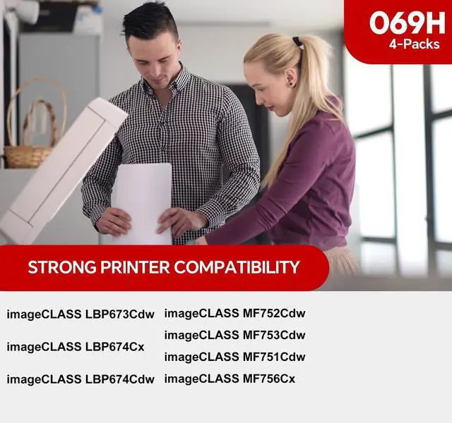 ^^ Compatible Printers: 069H toner cartridge set Designed for use with Canon imageCLASS MF753Cdw, MF751Cdw, MF752Cdw, MF756Cx, LBP673Cdw and LBP674Cdw printers, ensuring reliable and consistent printing quality.