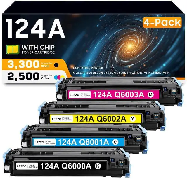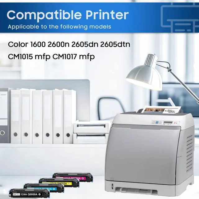 Products in the package: 124A Toner Cartridge 4 Pack, 1x Q6000A Black Toner Cartridge, 1x Q6001A Cyan Toner Cartridge, 1x Q6002A Yellow Toner Cartridge, 1x Q6003A Magenta Toner Cartridge ^^ Compatible for HP Color 1600 2600n 2605dn 2605dtn CM1015 mfp CM1017 mfp Printers ^^