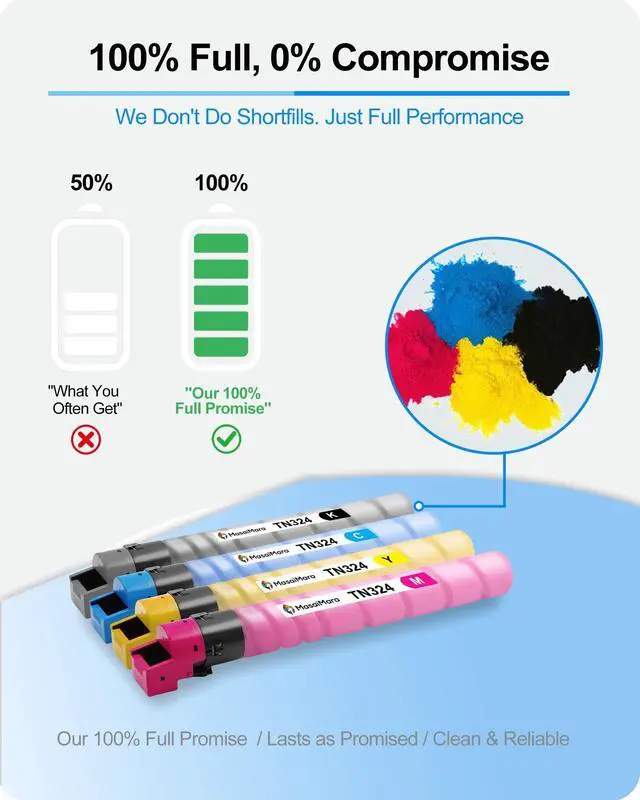 Model: TN324 TN-324 (TN324K TN324C TN324M TN324Y) Toner Cartridges. Formulated with premium A-Grade toner, these cartridges deliver sharp, professional prints with vibrant color accuracy while ensuring reliable performance that protect your printer and extends its lifespan.