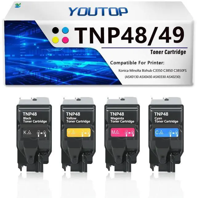 YOUTOP 4PK TNP-48 TNP48 Toner Cartridge High Yield (A5X0130 A5X0430 A5X0330 A5X0230) Compatible for Konica Minolta bizhub C3350 C3850 C3850FS