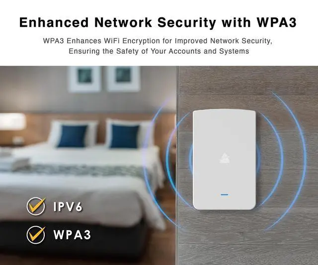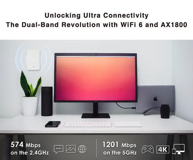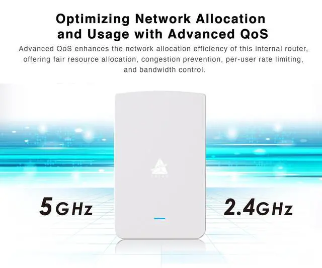 Dimensions: 3.51 x 5.59 x 0.98 inches ^^ ADVANCED WIRELESS TECH WITH SAFETYSupports WPA3, VLAN 802.1Q, and VPN Client to protect your data, while Multi-Admin, SNMP & Trap, and Remote Syslog enable you or your team to manage the network effortlessly in any situation. ^^ DUAL-BAND WIFI 6 AX1800 ROUTERSpeeds up to 1800 Mbps (574 Mbps on 2.4GH z, 1201 Mbps on 5GHz), WiFi 6 ( 802.11 ax) for enhanced performance, perfect for web conferencing, multiple devices, and home offices. ^^ EXPANSIVE 600 SQ. FT. COVERAGE & FOR 64 DEVICEDual-concurrent antennas optimize network efficiency. It offers seamless compatibility, self-optimization, and user-friendly management tools for network expansion and peak performance. ^^ POE PASSTHROUGH & IN-WALL DESIGNThe in-wall design fits standard US junction boxes, offering 4 LAN ports (Gigabit) and supporting 1 PoE OUT for flexible placement choices and device deployment in hotel, home, basement or PoE-required scenarios. ^^ EASY SET UP AND MANAGEMENTSet up and install in minutes with our easy installation process and user-friendly management interface. The PrismX controller software allows you to seamlessly control everything from any device, without requiring subscriptions, licenses, or paid features.