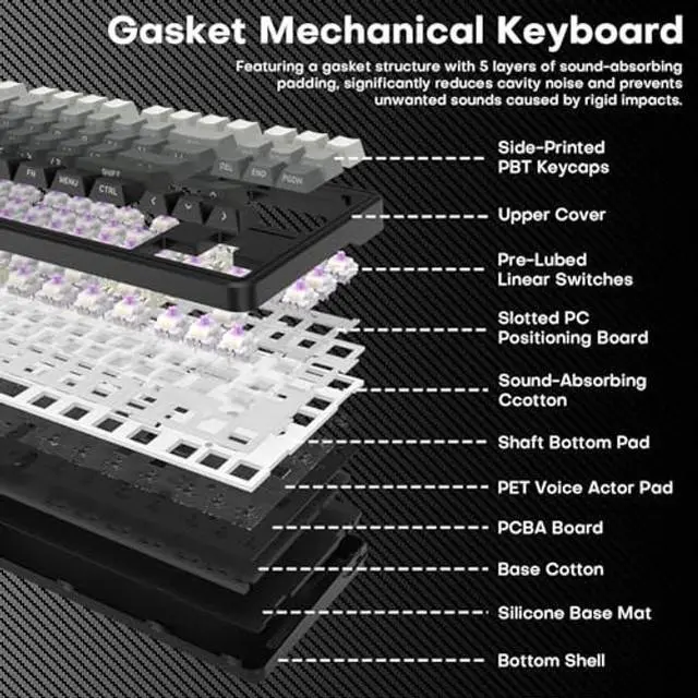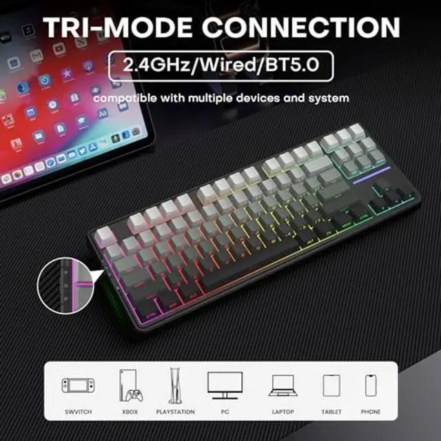 GEODMAER G87 Wireless Mechanical Keyboard, Tri Mode 2.4GH z/USB-C/BT 5.0 Hot Swappable Custom Gaming Keyboard, Pre-lubed Linear Switches, RGB Backlit, Side Printed PBT Keycaps Keyboard for PC Mac Gamer