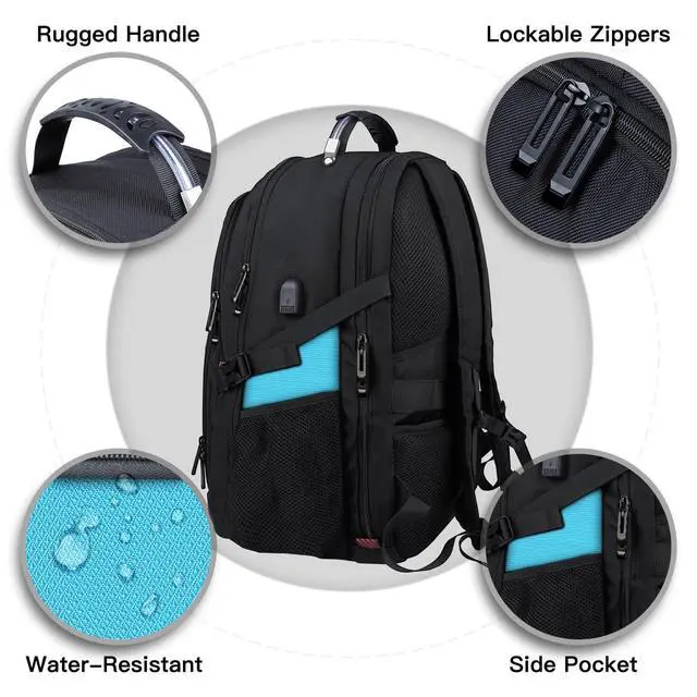 USB Port: The big backpack is made of high quality polyester fabric with nylon lining for better water resistant, which can be protected in rainy days. Travel backpack can provide leak-proof protection for items, anti-theft zip pocket in the back of travel backpack could protect your valuables such as key, cash and valuable items. The USB charging port allows you to charge your phone or other electronic devices such as headphones.