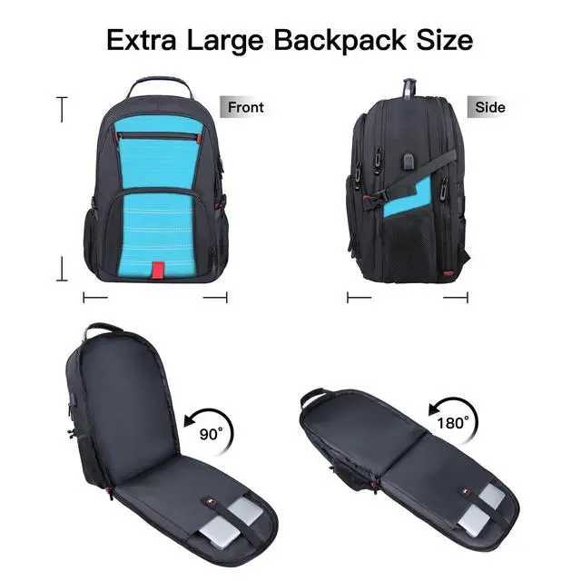 180. The TSA design makes it easier for the extra large backpack to pass through airport security, allowing you to save time at the airport and enjoy a pleasant and relaxing air travel. This travel backpack for men is the best choice for office workers on business trips. As long as you have the need to go out, this large backpack for travel is a good choice