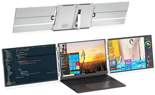 Specification15 inch 1920x1080 high resolution portable laptop screen extender for 13.3 -16 inch laptops; 16:09 Screen ratio; 240 cd/m (Typ. ) brightness; 178 wide viewing angle and 60Hz refresh rate ^^ Triple MonitorAdd two extra screens to your laptop with laptop screen extender. Triple monitor effortlessly run multiple windows and multitask simultaneously, boosting productivity and saving valuable time ^^ Flexible MonitorPortable laptop monitor supports flexible, the angle of left and right screen can be adjusted to 0 degree to 105 degree; Multiple interface type, supports mini h/d, USB-C signal input, plug and play ^^ ApplicationExtender screens for laptops, fit for laptop users those who are looking for more screen real estate but also want to be productive on the go, a thoughtfull tool in study and work ^^ Packing List1*Extend Monitor; 1*Mini H/D to H/D cable; 1*USB-C to USB-C cables; 1*USB A to USB-C cable; 1*Folding leather case; 1*exquisite box; 1*User's manual