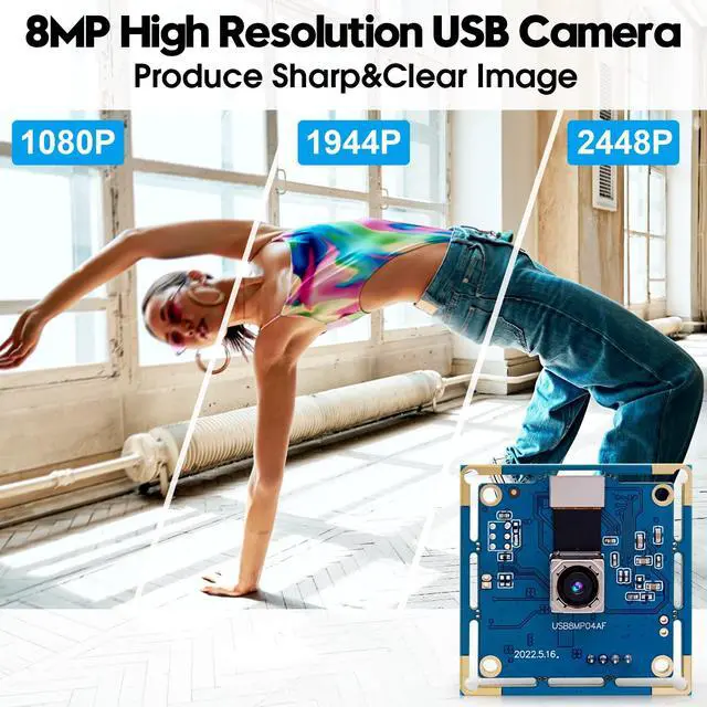 ^^ High Quality Imaging: This camera adopts 8MP IMX179 sensor for sharp image and accurate color reproduction. ^^ Autofocus - Shoot objects in millimeter level and in the distance on the same camera, automatically controlled without lens adjustment tool, closer and easier than the fixed focus camera. ^^ Plug&Play - UVC-compliant, just connect the camera to PC computer, laptop, Android device or Raspberry Pi. No extra drivers needed ^^ Mini Size compact Webcam - mini Size lens and board for embedded application, wide range applications - this tiny 38mmx38mm camera board can be installed in most hidden and narrow position for a home surveillance system, monitoring 3D Printer, object recognition and tracking or other machine vision application. ^^ Camera with UVC for computer, laptop, pc, etc.