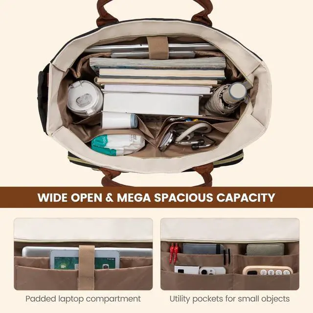^^ Dedicated Compartments: Includes a padded laptop sleeve for devices up to 15.6 inches, plus a separate pocket for tablets, ensuring your tech is secure and easily accessible.