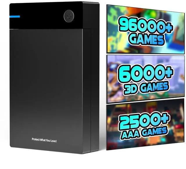 Rich Classic Retro GamesKinhank 12TB retro gaming hard drive will turn your PC into a retro game console instantly. This external hard drive built in 96000+ classic games, 400+ game collections and 2500+ AAA games. Compatible with many emulators including large emulato ^^ Extensive CompatibilityThe 12tb hard drive is compatible with Windows 7 and above systems. To ensure smooth game performance, it is recommended to use an Intel Core i5 CPU or above and an Nvidia GeForce 1050ti or above graphics card for playing large-scale games more smoothly. ^^ Powerful PerformanceEquipped with a 3.5 -inch 12tb retro gaming hard drive that runs at 7200 RPM, with 256MB cache and 6GB/s speed, ensuring stable and faster data transfer for a seamless gaming experience.