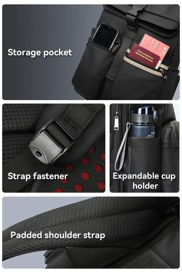 Multi-functional Design: Front panel features 3 multi-size pockets for organized storage of various items. Expandable side water bottle pocket accommodates oversized tumblers/umbrellas, constructed with waterproof technical fabric.