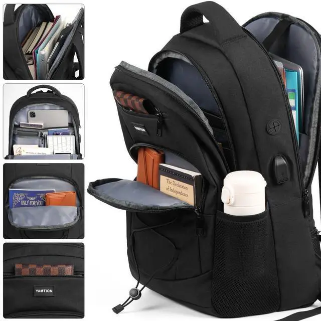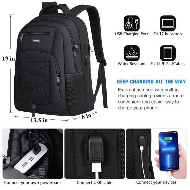 35LDepartment: UnisexFeaturesThe backpack luggage sleeve allows the schoolbag to be fixed on the suitcase for happy travel. Unique 600d oxford waterproof fabric protects your clothes, books, personal items from rain. Zipper pockets inside, perfect for school and business. Laptop compartment with velcro, ideal for 12", 13.3", 14", 15", 15.6", 17.3" laptops. Tablet compartment holds a 9.7" tablet. The anti-theft pocket protects your personal items, such as wallet, passport, and ID card from potential theft when traveling or lining up. Reflective stripe on the front to make you be noticed in dark. Ideal for high school, university, office, and travel. Guide of Bag's Size 15.6 inch bookbag is ideal for people of height from 4.2 ft to 6.3 ft. 17.3 inch bookbag is ideal for people of height from 5.1 ft to 6.5 ft. Warranty30 days free return and exchange, one year warranty. Package IncludeBackpack x 1USB Cable x 1