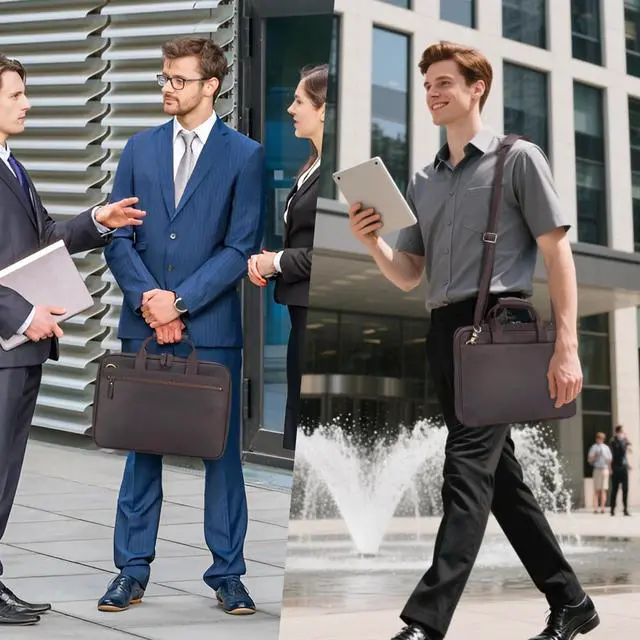 Slim Leather BriefcaseUltra thin in 2.2 thick, the leather 14 laptop bags are minimalist. Its classic design is nice for businessmen, lawyers, attorneys, executives as professional top-handle brief cases, business laptop bags, or daily commuting work bags for customer visiting, office work, business meeting.