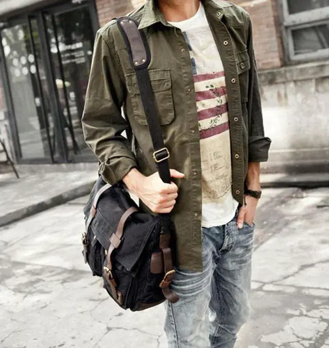 Main material: cotton canvas, first layer of leather and bronze metal ^^ Messenger Bag Szie (XL) 42cmL* 12cmH* 34cmW/ 16.5L * 4.72H * 13.39W ) inches ^^ This canvas crossbody sling bag is suitable for office, shopping, dating, weekend, travel bag, etc. ^^ Large single compartment; One main bag and four outside bags and one inside bag. ^^ Please Note- Zipper- Not Metal Zipper!! THIS ITEM IS NOT INTENDED FOR USE BY CHILDREN 12 AND UNDER
