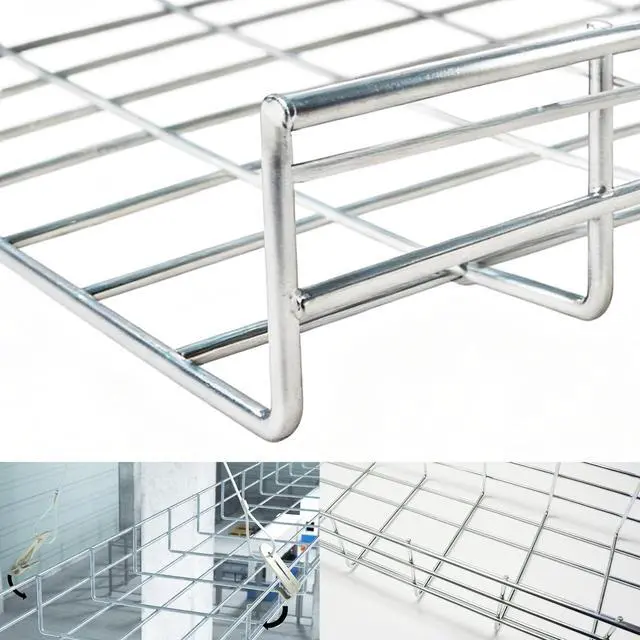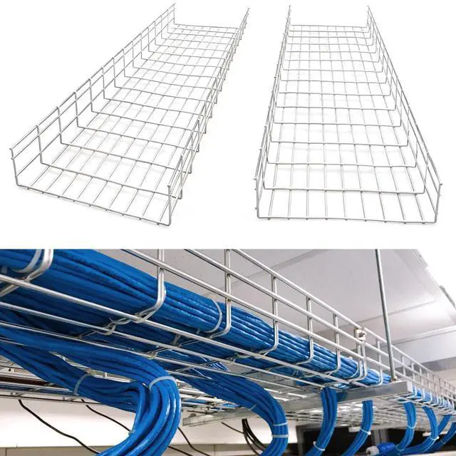 It helps separate and secure wires, preventing tangling and reducing the risk of damage, keeping your space clean, organized, and safe. Ideal for structured cabling projects and professional cable management systems. ^^ Versatile Applications Perfect for a wide range of uses, the wire mesh cable tray is great for data centers, office spaces, garages, workshops, server rooms, hospitals, schools, and restaurants. Whether you're managing network cables, electrical wires, or AV setups, this tray offers a clean and efficient way to keep cables organized, safe, and easily accessible.