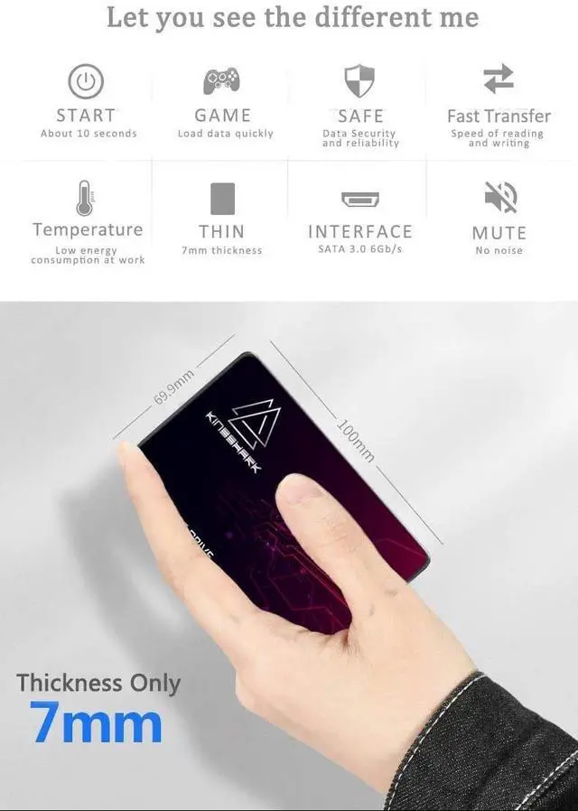Note: The larger the capacity of SSD is, the quicker its speed will be. Above data are also related to other hardware devices of the computer. If configurations of other hardware are high, then the speed will be faster. But if the configurations are low, the speed will be slower. The actual available capacity of our solid state disk is a little smaller than we listed due to the different calculations between computers and manufacturers.