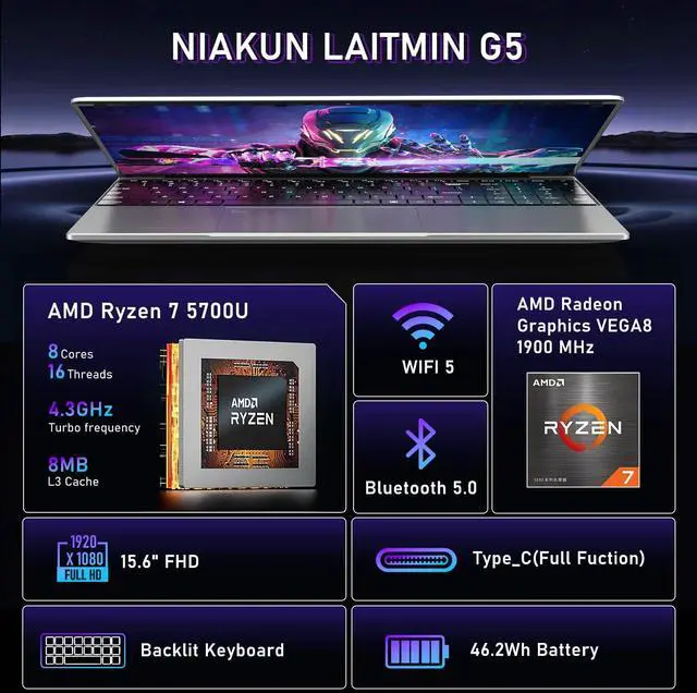 Micro thin bezel provides more viewable space and immersive viewing experience. With an abundance of ports, you can connect multiple devices at the same time to make your multitasking more efficient. ^^ Backlit Keyboard and Fingerprint ReaderThe ergonomic backlit keyboard with comfortable key stroke allows you to quickly express your thoughts. Fingerprint unlocking quickly opens and secures your device. ^^ DIY Upgradeable Storage CapacityThe NIAKUN laptop is equipped with 32GB of DDR4 RAM 2666MHz to improve the system's speed and responsiveness. It also includes a built-in 1TB M. 2 2280 SSD, providing ample space for storing system files and large games.