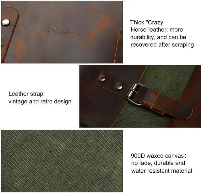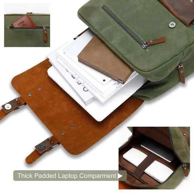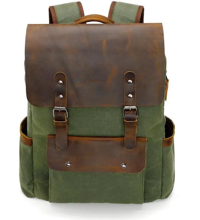^^ WAXED CANVAS: The canvas of our vintage laptop backpack is a cotton canvas that has been impregnated with wax, it is a high quality, water repellent and wear-resistant fabric. And the slightly waxy feel gives it a worn, mottled look with use, making it more vintage-chic with age.