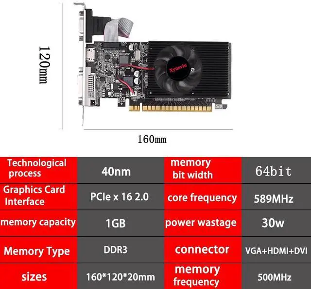 The GT 210 graphics card offers a reliable entry-level solution for users looking for enhanced graphics performance. Designed for versatility, it offers an affordable option for a variety of computing needs. ^^ Equipped with DDR3 memory, the GT 210 is perfect for everyday computing tasks, multimedia applications and light gaming. It strikes a balance between affordability and performance for users with basic graphics requirements. ^^ The GT 210 is equipped with a wide range of connectivity options such as HDMI, DVI and VGA ports, allowing flexibility for a variety of display settings.