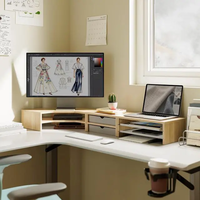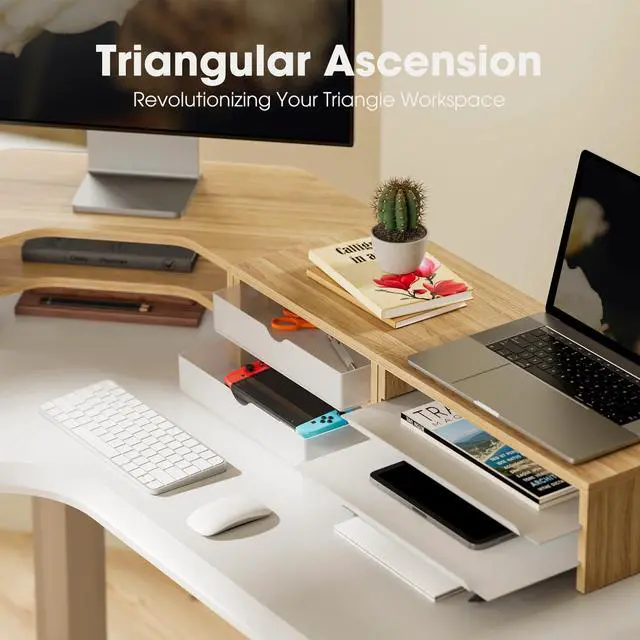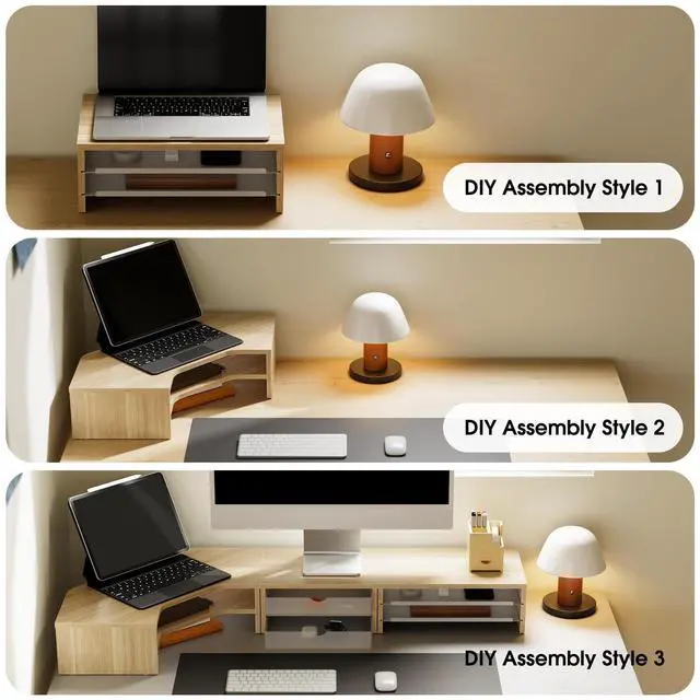 Limitless DIY Configurations: Fenge corner monitor stand modular system offers 6 flexible layouts. Freely assemble 3-unit into a monitor riser, a desk shelf or a corner desk organizer, The act of building it your way enhances ownership. The resulting organized, personalized triangle zone boosts efficiency for work, hobbies, and creative projects, helping you build a better, more inspired self.