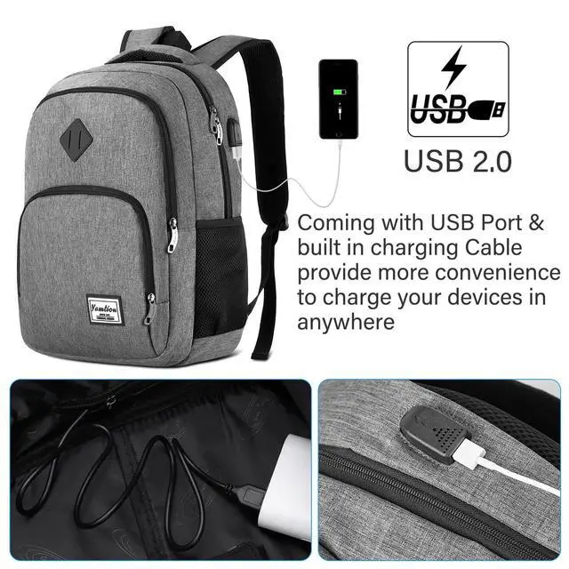 Please noted that this backpack doesn't power itself, usb charging port only offers an easy access to charge. ^^ ERGONOMICS & LUGGAGE STRAPComfortable airflow back design with thick and soft breathable padding gives you maximum back support. Adjustable "S" shoulder straps relieve the stress of the shoulders, A luggage strap allows backpack fit on luggage/suitcase, slide over the luggage upright handle tube for easier carrying. All ergonomic functions ensure comfortable and safe everyday & long-lasting travelling usage. ^^ FUNCTIONAL BACKPACKMetal Zipper allows it to slide easily and smoothly. Key Ring design, organized your key well and let you find out your key in all sorts of things easier, plenty of pencil pouches for school supplies.