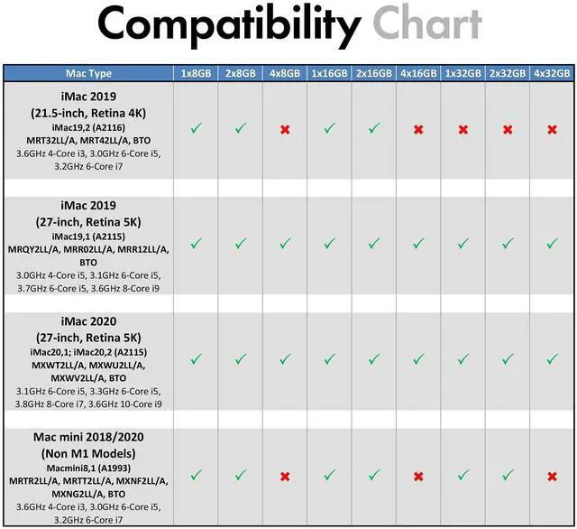 Model IDs: iMac20, 1 iMac20, 2 iMac19, 1 iMac19, 2 - 3.6GH z i3, 3.0GH z i5, 3.1GH z i5, 3.3GH z i5, 3.7GH z i5, 3.2GH z i7, 3.8GH z i7, 3.6GH z i9 ^^ Compatible with Mac mini 2018 & 2020 (non M1 models) -