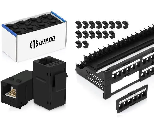 Bundle 2 Items: 48-Port Keystone Patch Panel + 48 Pack of RJ45 CAT6 Keystone Couplers - Black
