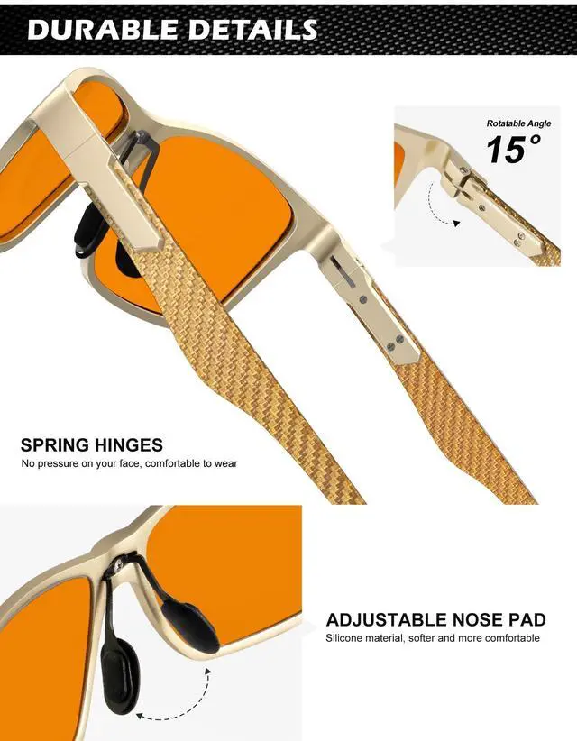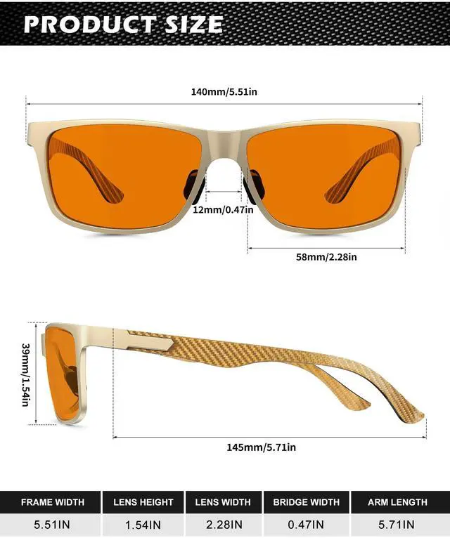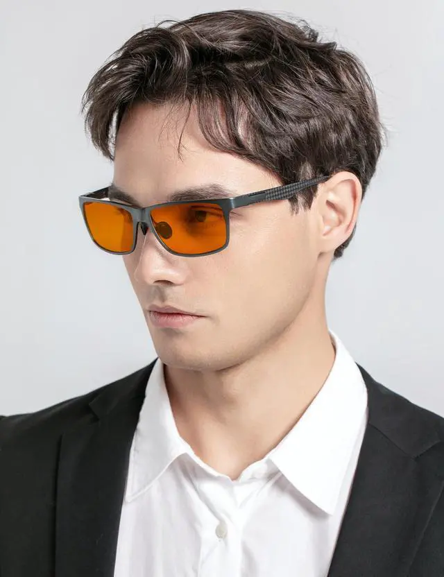 • Premium Temple Material: With superior Al-Mg and carbon fiber composite temple, this type of blue light blocking glasses for men is ultra-light than pure metal frame, also more sturdy. No more worries about broken temples. As more suitable for anyone who often work or play games by the computer, do not miss this pair of practical and classic blue blocker glasses.