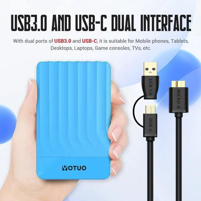 • Plug and play for home and office equipmentYOTUO HDD01 USB 3.0 external hard drive. Suitable for Windows XP/2003/Vista/7/8/10/11, Linux, Mac OS system. As well as laptops, desktop computers, PS4, PS5, XBOX 360, XBOX ONE, XBOX series X/S and other office equipment and gaming equipment. The product is plug-and-play when used in Windows. For Mac users, first format the drive and select the ExFat format.