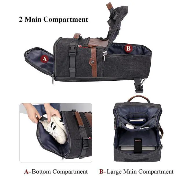 Multifunctional Carrying On Backpack: Come with an adjustable and removable shoulder strap, can be used as a duffel bag. Good choose for a travel backpack, laptop backpack for men, work backpack, office work bag for men and women.