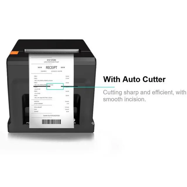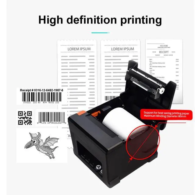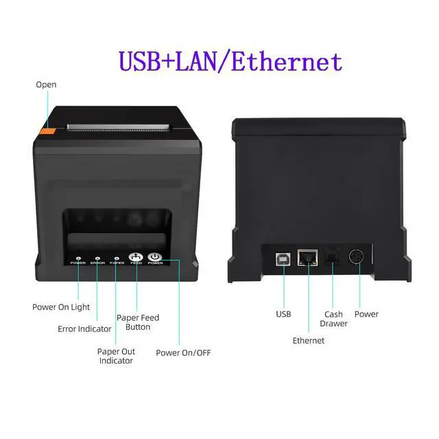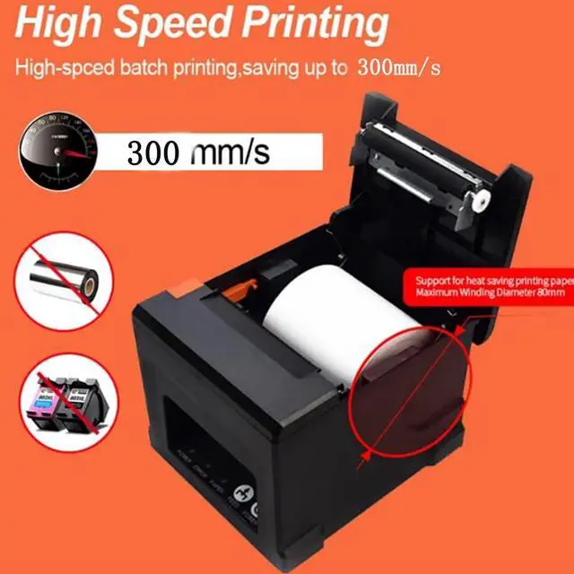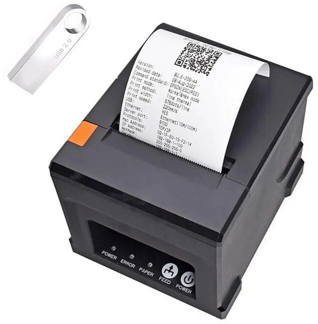[with U disk] with U DISK in pacakge, (U disk include driver, SDK, English using manual, instruction for how to install diver, video), USB +LAN/Ethernet Interface, With Auto cutter function, cut paper easily, 80mm POS kitchen receipt printer [Fast and Easy printing] it's compatible with WIN 7/8/10/11/XP/2000, MAC LINUX, this printer has an advanced print head with an auto cutter that prints at a speed of 300mm/sec. It does not require any ribbon or cartridge, and has a one-button open cover and a large paper warehouse for easy use and maintenance.