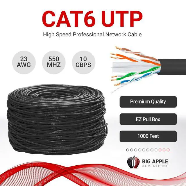 Package Include: 1000 Feet Cat 6 Ethernet Cable is a CMR UTP Bulk Wire, 550 MHz Black