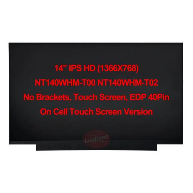 Brand New NT140WHM-T00 NT140WHM-T02 L61949-001 Replacement Laptop 14 inch HD 1366x768 eDp 40 Pins LCD On-Cell Touch Screen Display Panel for HP Chromebook 14 G6 G7 Fortis 14 G10 B140XTK 02.0 B140XTK 02.3 with