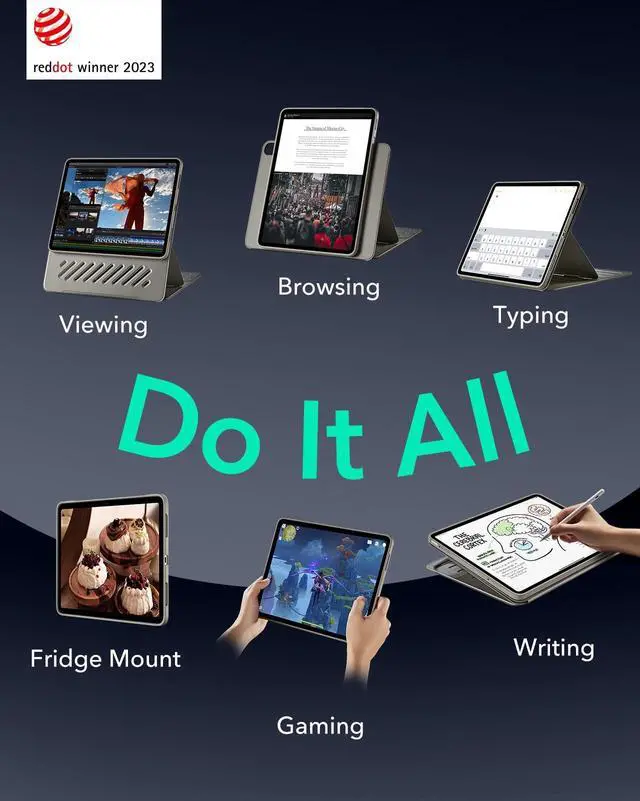 Powerful Versatility: achieve up to 9 different angles, 6 for viewing and 3 for writing, via the dual support brackets and 6 magnetic grooves, then instantly detach for hands-on gaming or to magnetically attach to your fridge ^^