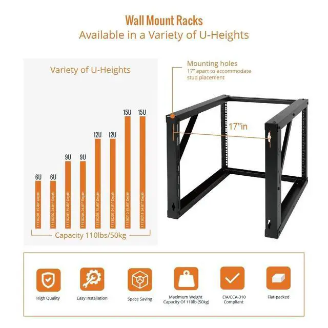 Easy Installation: EIA/ECA-310-E complaint; 9U Wall Mount Rack provides corresponding accessories, instructions and video explanation for reference