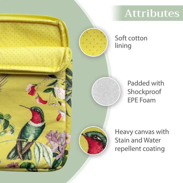 Maison d'Hermine Laptop Sleeve Bag Upto 15.5 inch Stain and Water Repellent Cotton Canvas Easter Gifts - Eden - Yellow