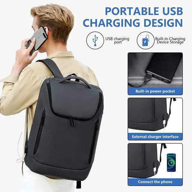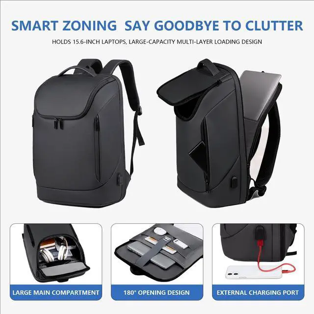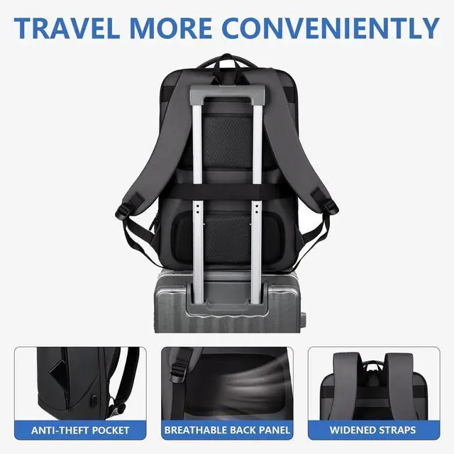 Shockproof Protection Features thickened cushioning, anti-scratch surface and reinforced corners to safeguard laptops up to 17. Compatible with 14, 15.6 and 17 devices, reducing impact damage during daily commute and outdoor travel. ^^ Water-Resistant Lotus Leaf Fabric Made of high-density coated Oxford material with splash-proof performance, effectively blocking light rain and accidental spills to keep electronics, documents and clothes dry in wet conditions. ^^ Massive Organized Storage System Designed with 7 independent compartments, side/front zipper pockets and hidden breathable pockets. 180 opening laptop pocket, classified pockets hold clothes, umbrellas, water bottles and small essentials neat ^^ Ergonomic Travel-Friendly Build Lightweight 0.95 kg/ 2.65 lb design with breathable padded shoulder straps (built-in card slot & glasses hanger).