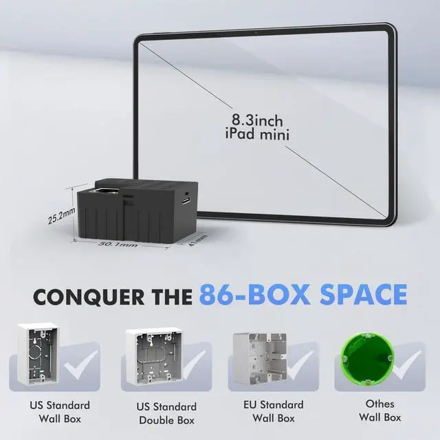 Unit Only, Maximum Flexibility This listing is for the injector unit only (with integrated data cable), excluding the mounting bracket. Ideal if you already have a bracket or prefer a custom, minimalist install, preventing unnecessary purchases. ^^ Ultra-Compact, Disappears into 86mm Box With minimal dimensions of 50.1 mm 41.0 mm 25.2 mm, it's engineered to fit flush within standard 86mm wall boxes for a seamless, invisible integration that maintains a clean aesthetic. ^^ PoE-Powered Simplicity withThree SKU Options Delivers both power and data over a single RJ45 cable.