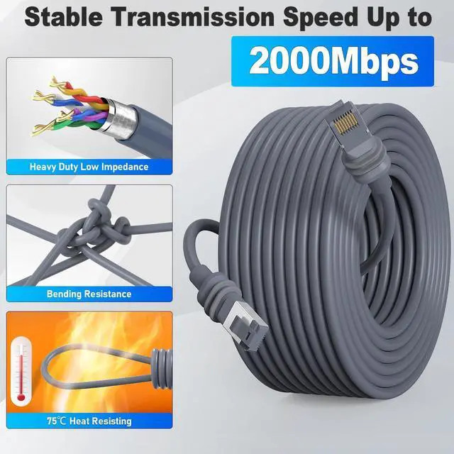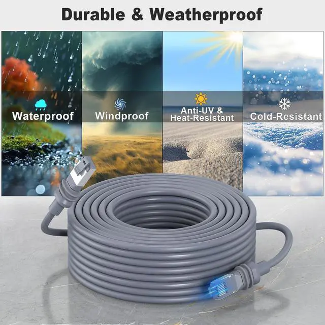 Durable & WeatherproofMade from waterproof and heatproof materials, wrapped with premium cord, the internet cord cable has long-lasting durability, suitable for outdoor and indoor, in various environment and weather conditions. ^^ Reliability& No interferenceThe Extension Ethernet Cord of 26AWG wires is fully shielded and contains 8 copper wires for data transfer, also the ensure a connection without interference. ^^ Plug and PlayJust plug in to use, Easy to install and no need complicated setting up, allowing your Rectangular Satellite V3 to connect without complex configuration. ^^ High-SpeedThe replacement cable is produced according to the standards of the original and support the Max transmission of 2000 Mbps, making it possible for smooth data transfer and streaming without lag.